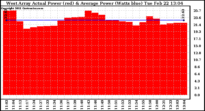 20110222 West Array Actual & Average Power Output