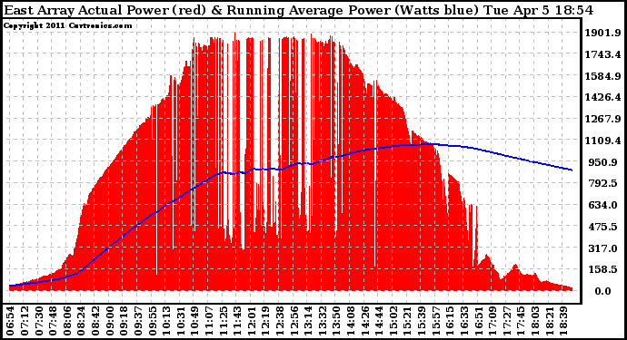 20110405 East Array Actual & Running Average Power Output