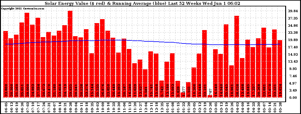 20110601 Weekly Solar Energy Production Value Running Average Last 52 Weeks