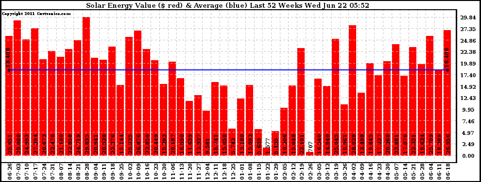 20110622 Weekly Solar Energy Production Value Last 52 Weeks