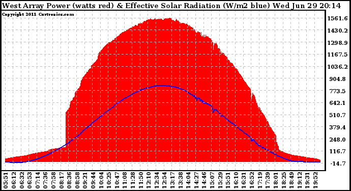20110629 West Array Power Output & Effective Solar Radiation