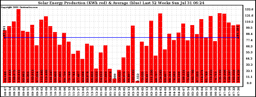 20110731 Weekly Solar Energy Production Last 52 Weeks