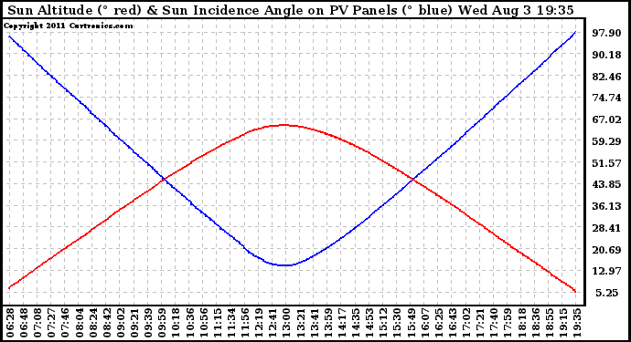 20110803 Sun Altitude Angle & Sun Incidence Angle on PV Panels