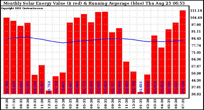 20110825 Monthly Solar Energy Production Value Running Average
