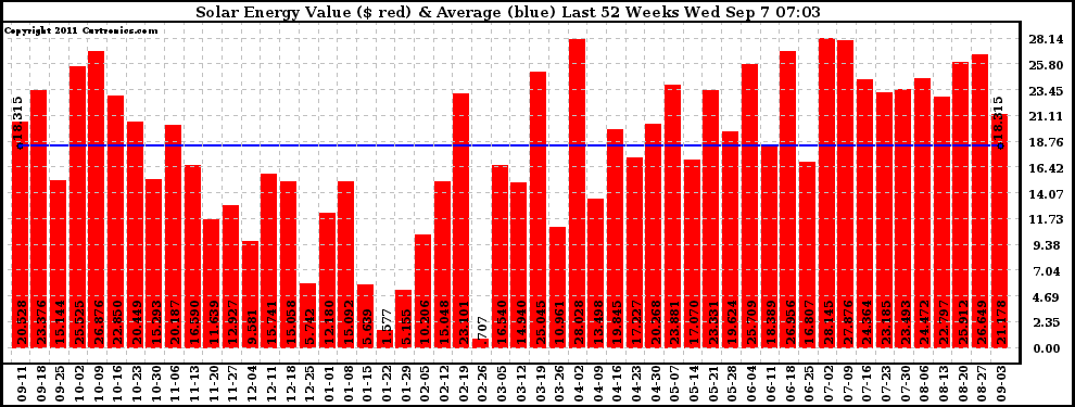 20110907 Weekly Solar Energy Production Value Last 52 Weeks