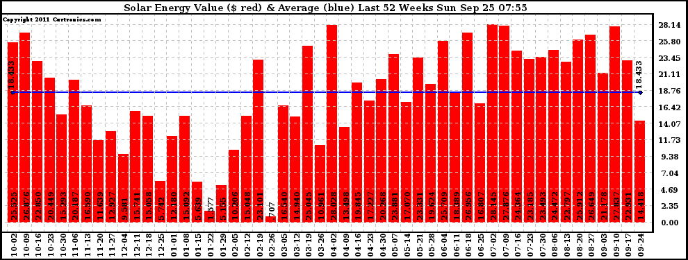 20110925 Weekly Solar Energy Production Value Last 52 Weeks