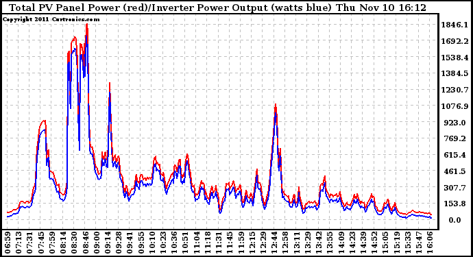 20111110 PV Panel Power Output & Inverter Power Output