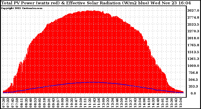 20111123 Total PV Panel Power Output & Effective Solar Radiation
