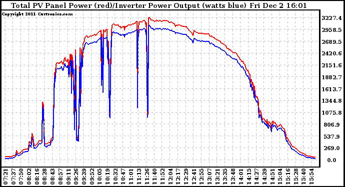 20111202 PV Panel Power Output & Inverter Power Output