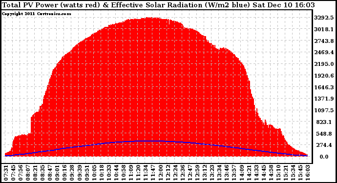 20111210 Total PV Panel Power Output & Effective Solar Radiation