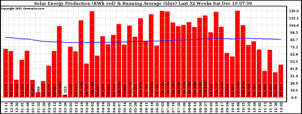 20111210 Weekly Solar Energy Production Running Average Last 52 Weeks
