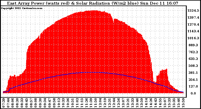 20111211 East Array Power Output & Solar Radiation