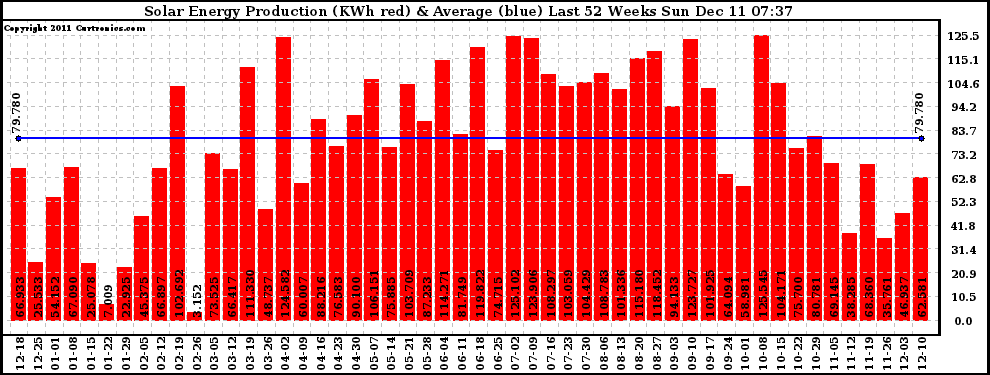 20111211 Weekly Solar Energy Production Last 52 Weeks