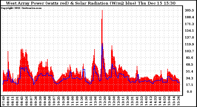 20111215 West Array Power Output & Solar Radiation