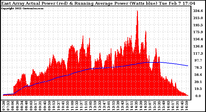 20120207 East Array Actual & Running Average Power Output