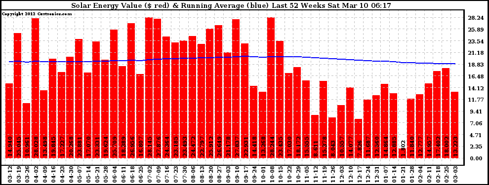 20120310 Weekly Solar Energy Production Value Running Average Last 52 Weeks