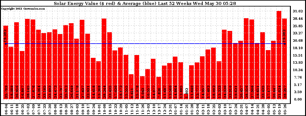 20120530 Weekly Solar Energy Production Value Last 52 Weeks