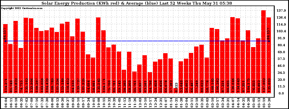 20120531 Weekly Solar Energy Production Last 52 Weeks