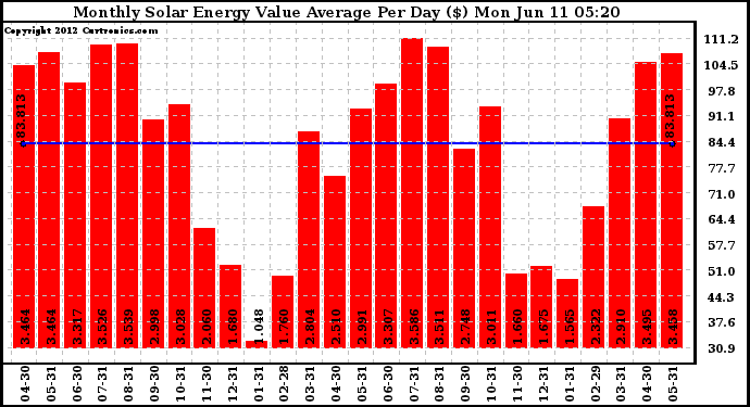 20120611 Monthly Solar Energy Value Average Per Day ($)