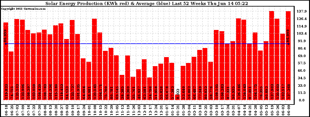 20120614 Weekly Solar Energy Production Last 52 Weeks