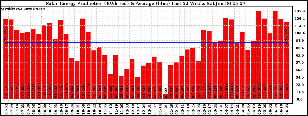 20120630 Weekly Solar Energy Production Last 52 Weeks