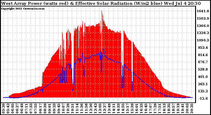20120704 West Array Power Output & Effective Solar Radiation