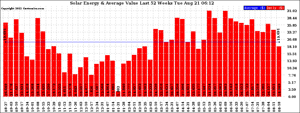 20120821 Weekly Solar Energy Production Value Last 52 Weeks