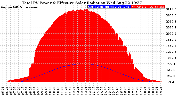 20120822 Total PV Panel Power Output & Effective Solar Radiation