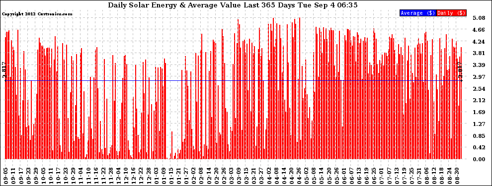20120904 Daily Solar Energy Production Value Last 365 Days