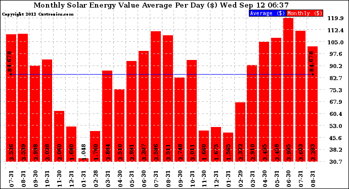 20120912 Monthly Solar Energy Value Average Per Day ($)