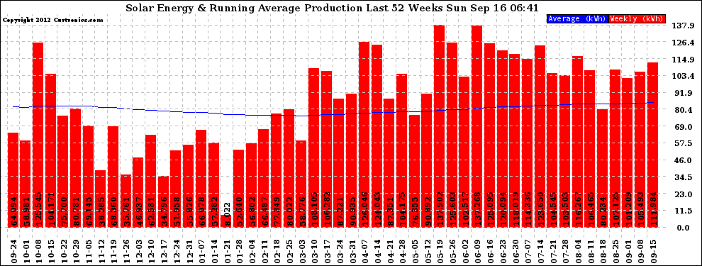 20120916 Weekly Solar Energy Production Running Average Last 52 Weeks