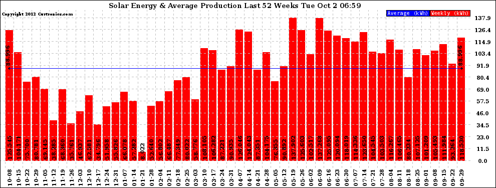 20121002 Weekly Solar Energy Production Last 52 Weeks