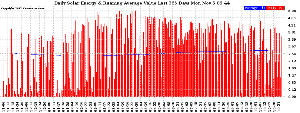 20121105 Daily Solar Energy Production Value Running Average Last 365 Days