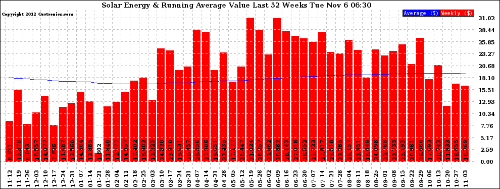 20121106 Weekly Solar Energy Production Value Running Average Last 52 Weeks