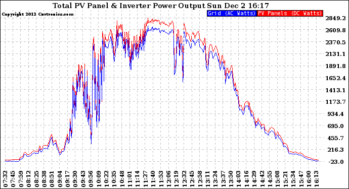 20121202 PV Panel Power Output & Inverter Power Output