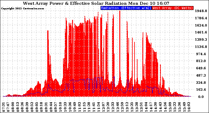 20121210 West Array Power Output & Effective Solar Radiation