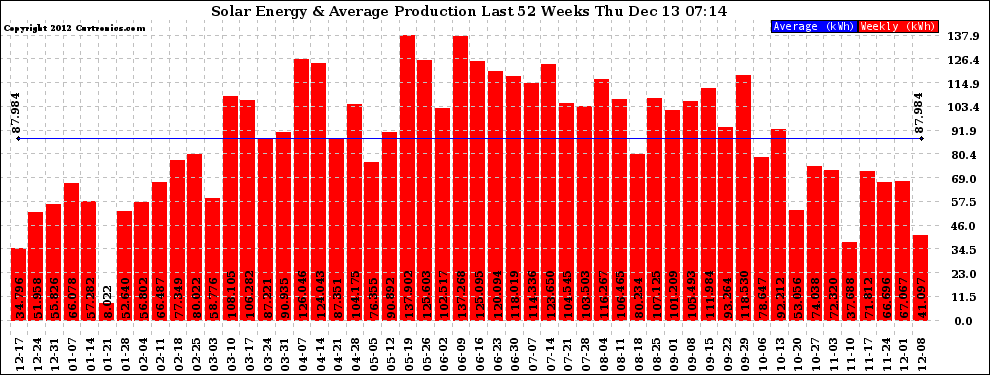 20121213 Weekly Solar Energy Production Last 52 Weeks