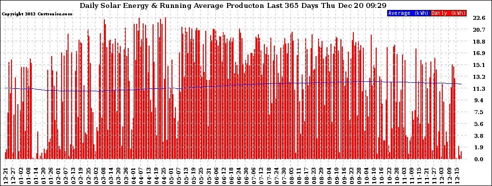 20121220 Daily Solar Energy Production Running Average Last 365 Days