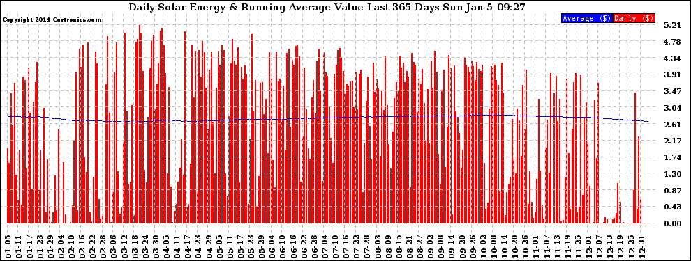 20140105 Daily Solar Energy Production Value Running Average Last 365 Days