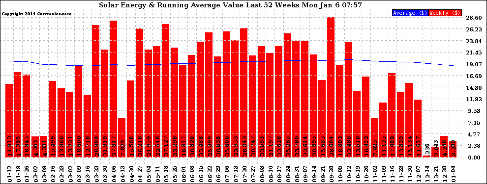 20140106 Weekly Solar Energy Production Value Running Average Last 52 Weeks