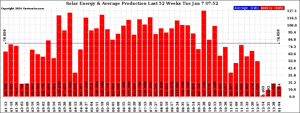 20140107 Weekly Solar Energy Production Last 52 Weeks