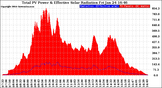 20140124 Total PV Panel Power Output & Effective Solar Radiation