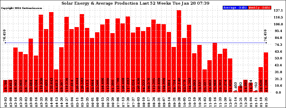 20140128 Weekly Solar Energy Production Last 52 Weeks