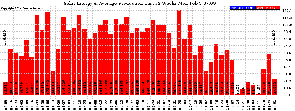 20140203 Weekly Solar Energy Production Last 52 Weeks
