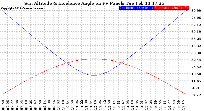 20140211 Sun Altitude Angle & Sun Incidence Angle on PV Panels