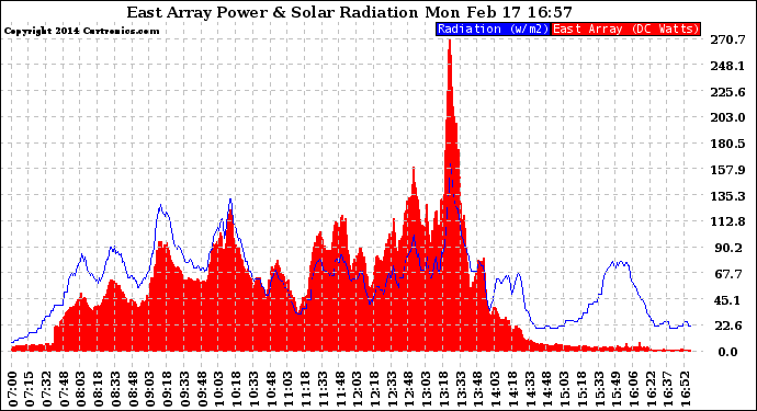 20140217 East Array Power Output & Solar Radiation
