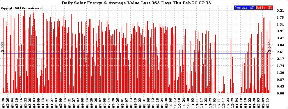 20140220 Daily Solar Energy Production Value Last 365 Days