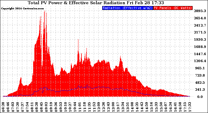 20140228 Total PV Panel Power Output & Effective Solar Radiation