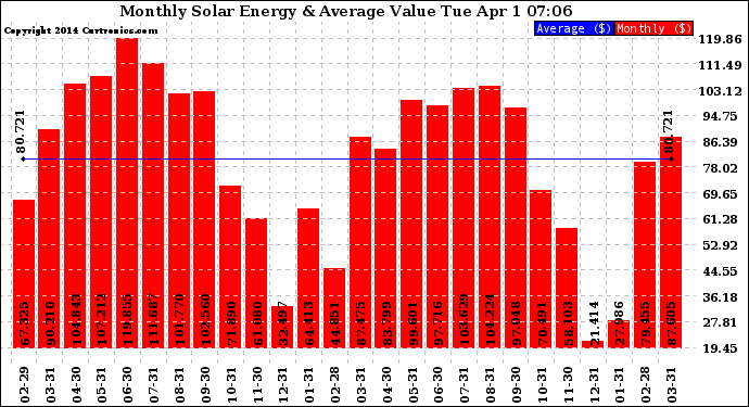 20140401 Monthly Solar Energy Production Value