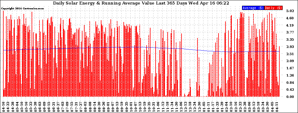 20140416 Daily Solar Energy Production Value Running Average Last 365 Days